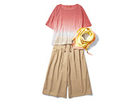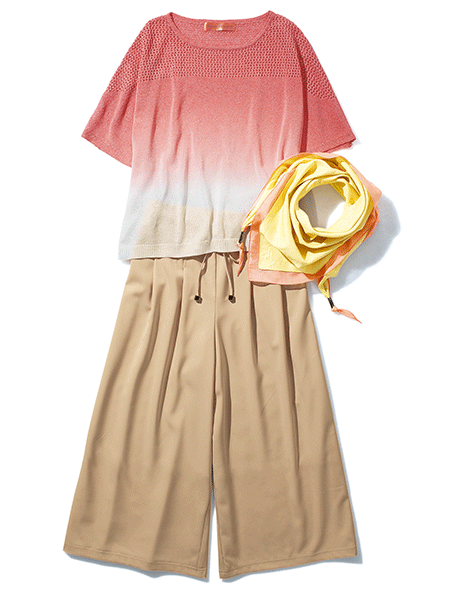 メッシュショートニット&ガウチョパンツで