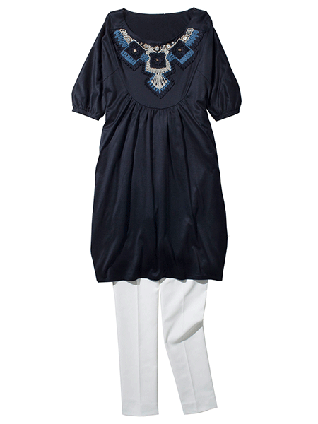 刺繍テクニックと艶のある素材感で常任は大人のカジュアルスタイル