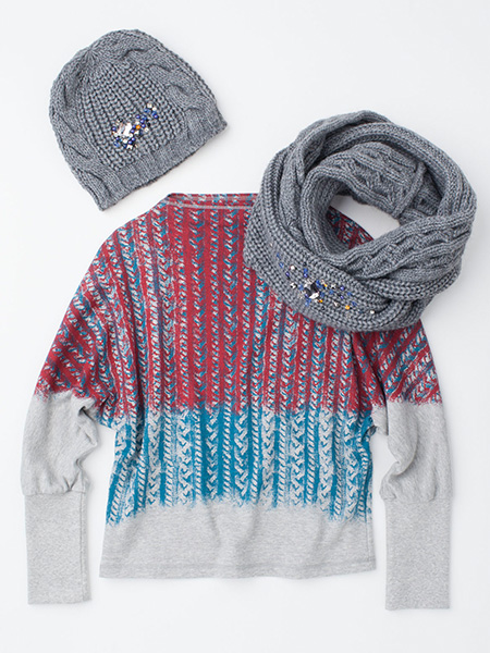 カットソー24,840円 ニットキャップ14,040円 ストール22,680円