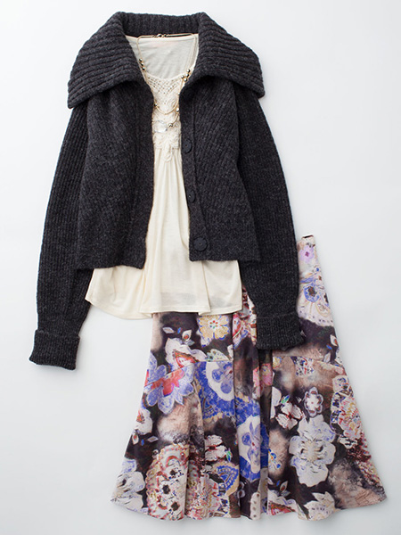 カーディガン35,640円 カットソー24,840円 スカート31,320円