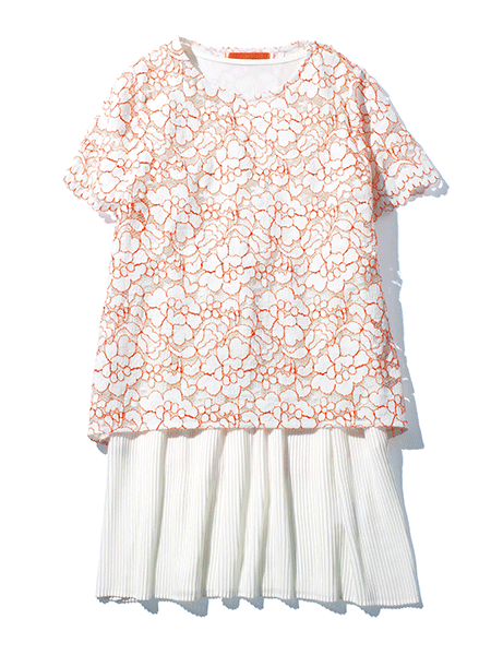 プリーツのレイヤードテクニックが大人可愛い