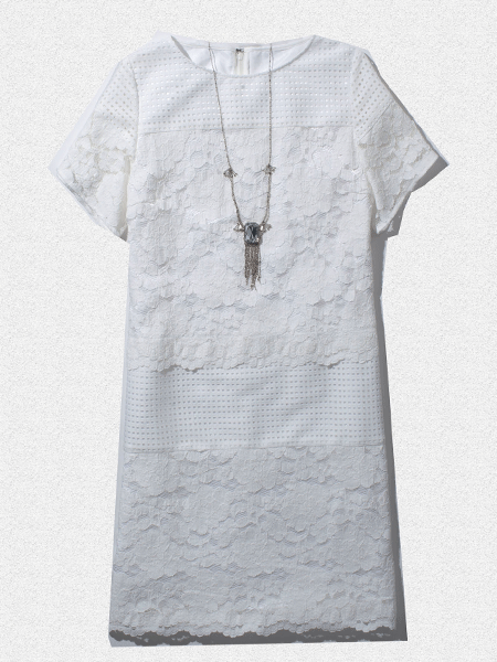 ブロッキングテクニックのレースワンピースで