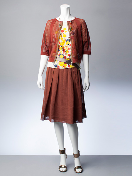 ニット23,000円 カットソー19,000円 スカート26,000円 ネックレス12,000円 ベルト13,000円 サンダル24,000円